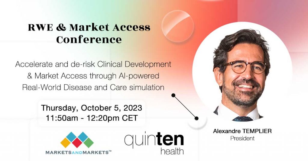 Quinten Health will be at the Real-World Evidence and Market Access Conference in Frankfurt, Germany. Alexandre Templier (President)will attend as a speaker the Real-World Evidence and Market Access Conference – EU Edition. In this session, he will unveil next-generation disease and care models, powered by artificial intelligence, to support drug clinical development, market access and life […]