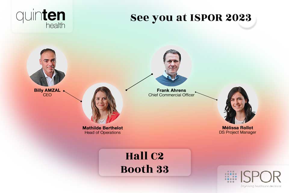 Quinten Health joins ISPOR Europe 2023, the leading European conference for health economics and outcomes research (HEOR) in Copenhagen. We’re thrilled to introduce our team for this prestigious event : Billy Amzal – CEO Frank Ahrens – CCO Mathilde Berthelot – Head of Operations Mélissa Rollot – Data Science Project Manager Find us at Booth #33 in Hall C2, where […]