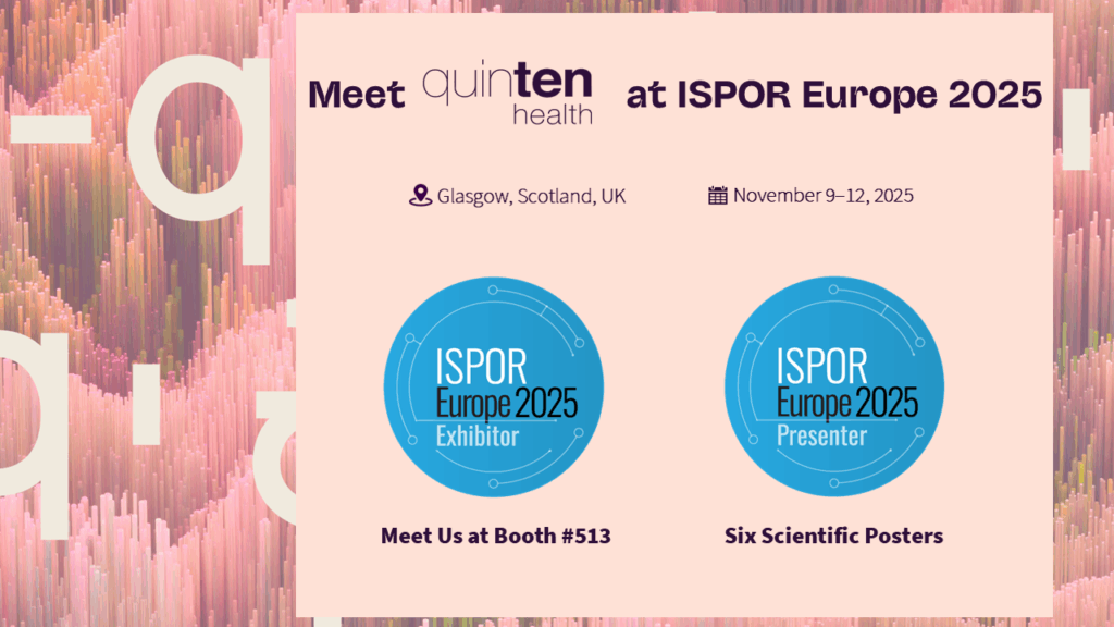 Shaping the Future of Evidence-Based Healthcare at ISPOR Europe 2025 At Quinten Health, we believe that AI and data science can transform how evidence is produced, interpreted, and used by healthcare stakeholders. Through our solutions, we enable regulators, payers, and life sciences organizations to access actionable and transparent insights. This year at ISPOR Europe, we […]